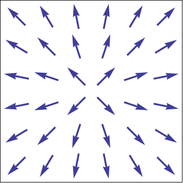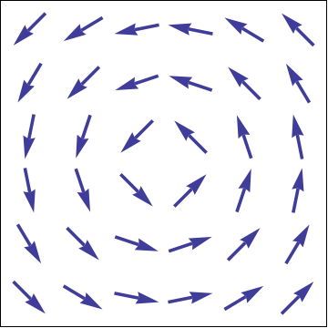 • Curvilinear basis vectors make a nice example of a vector field: The basis vectors adapted to a single coordinate form a simple example of the geometrical notion of a vector field, i.e. a vector at every point in space. For example, the polar basis vectors \({\hat{r},\hat{\phi}}\) are shown in these figures