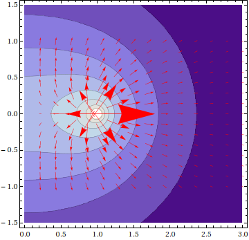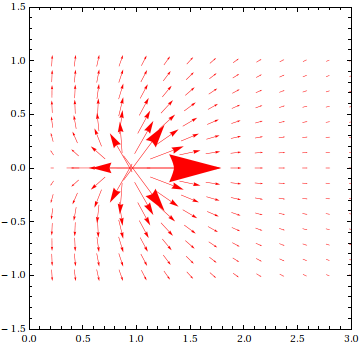 - Evaluate your expression for the special case that \(\vec{r}\) is on the \(x\)-axis.