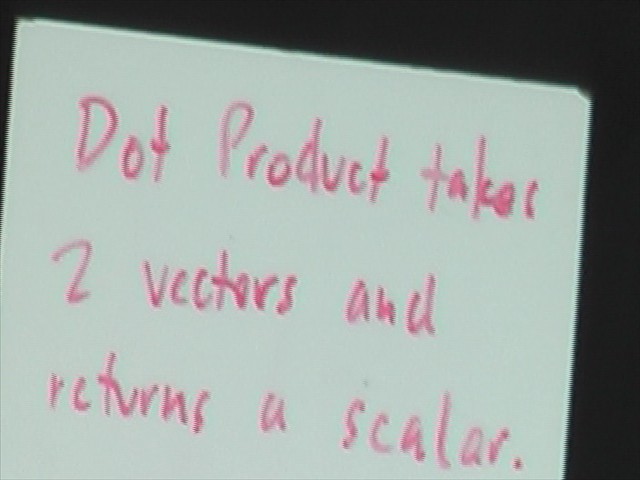 Prompt: On your small whiteboard, write one thing you know about the dot product.