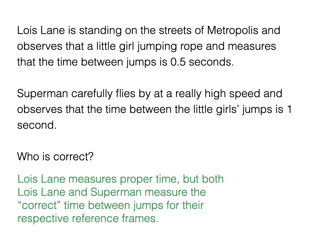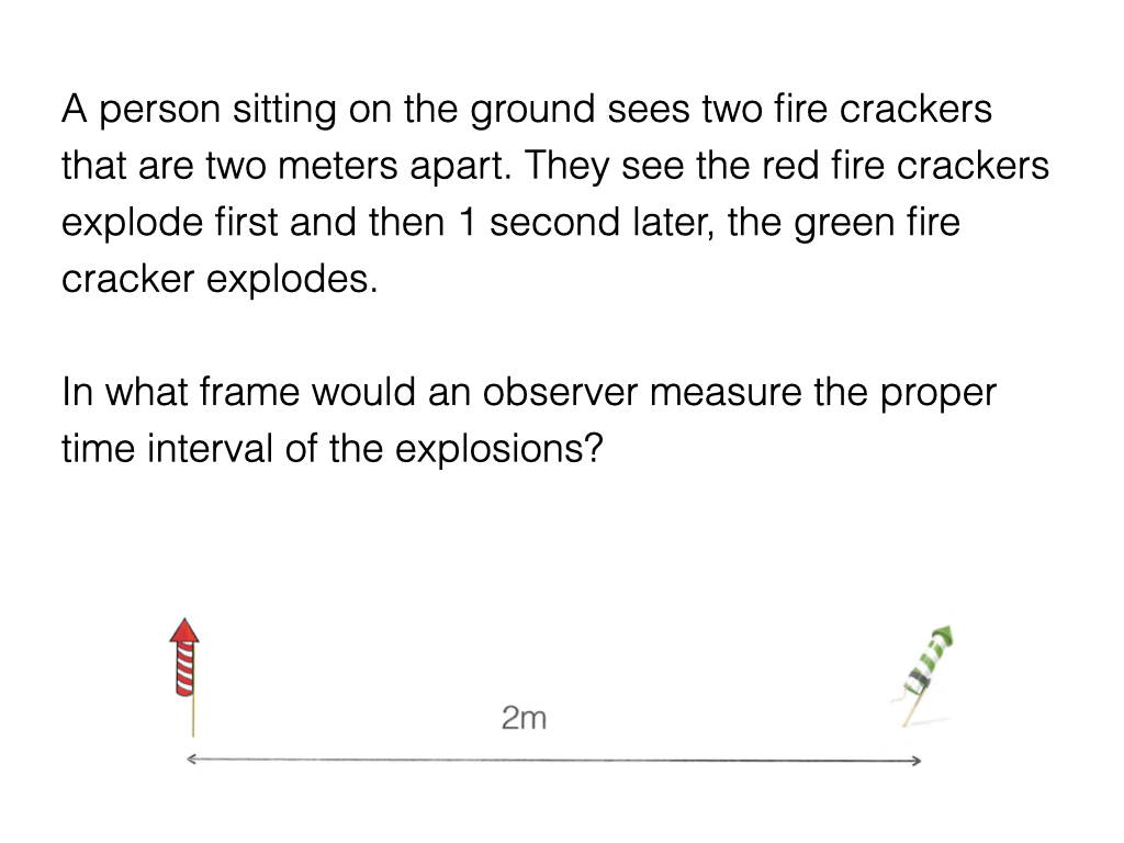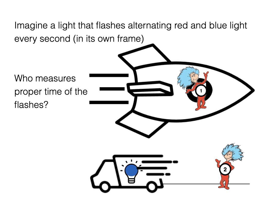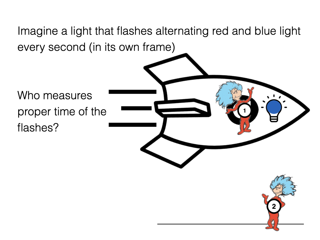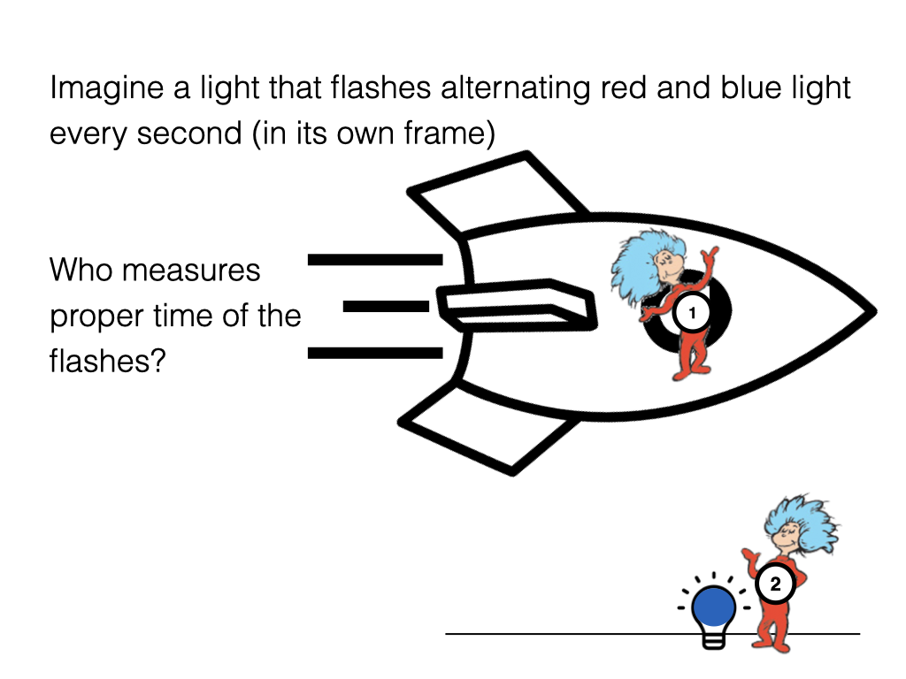- Proper time is measured by the observer for whom the events are all at the same spatial coordinate (colocated)