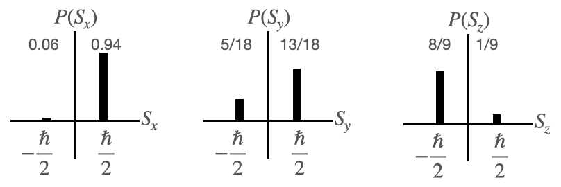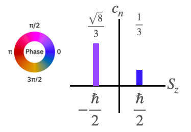 \[\left|{\psi}\right\rangle = \frac{1}{3}\left|{+}\right\rangle + \frac{\sqrt{8}}{3}e^{i\pi/4}\left|{-}\right\rangle \]