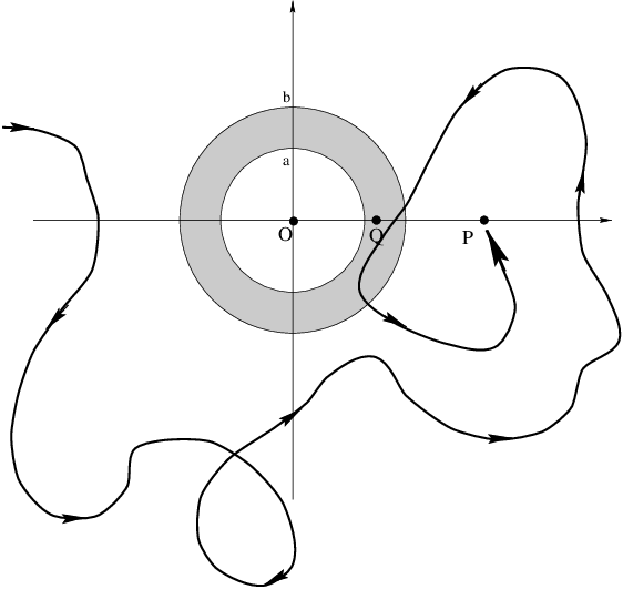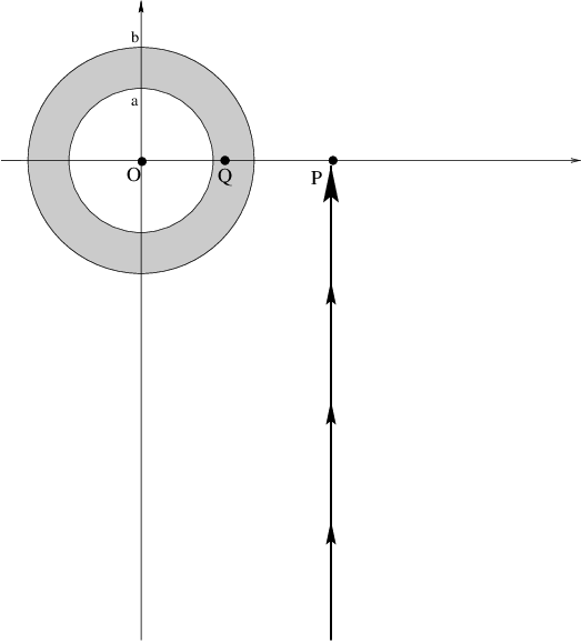 bring in the test mass along the path drawn below, to the point \(P\)